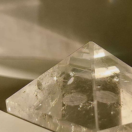 Each pyramid is unique due to its natural inclusions—some clear, some frosted, all formed over millennia. Place it on a bookshelf, conference table, or anywhere you want a crisp and grounded focal point.